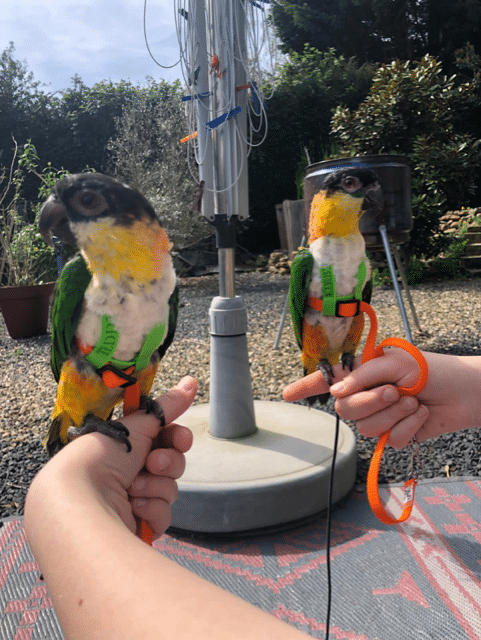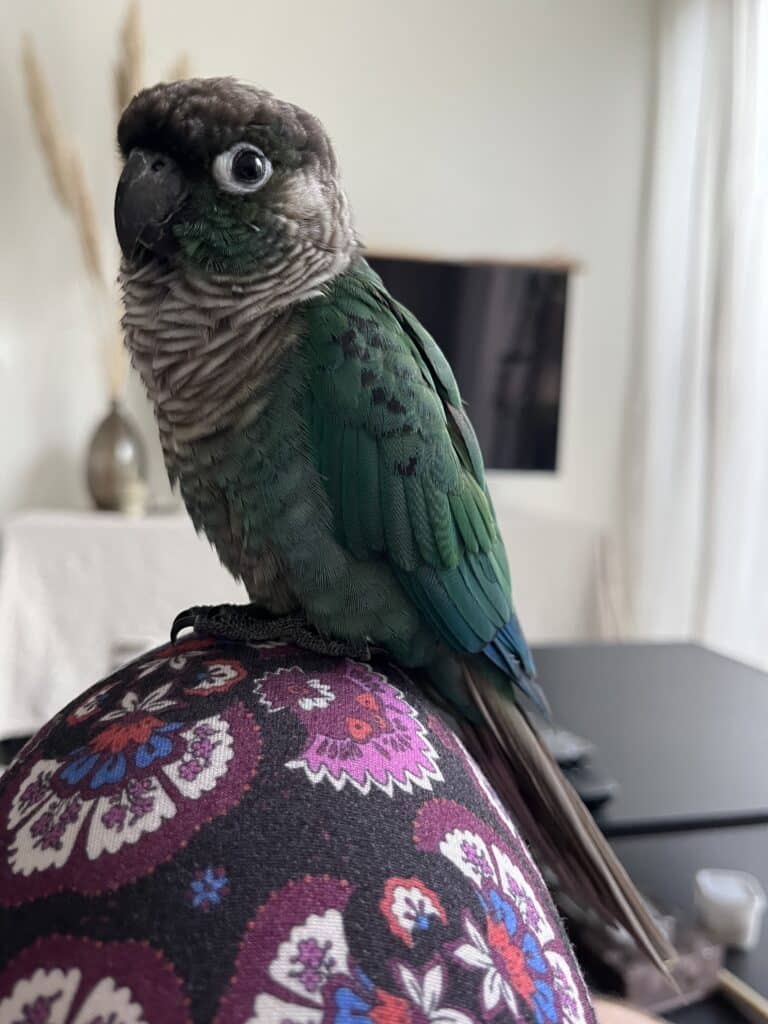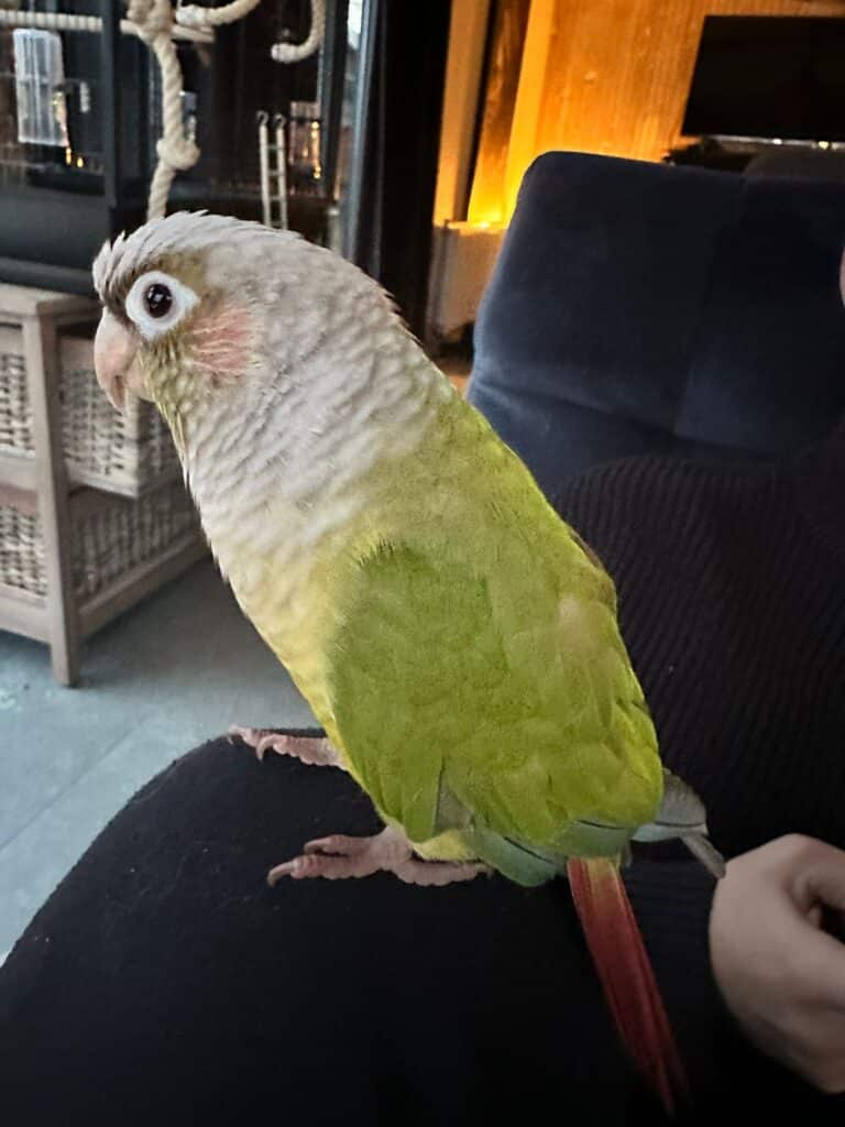Ik Charlie Ben erg op mijzelf en op Coco gesteld, ik stap wel op een stok maar probeer er ook zsm weer af te komen…..ik spreek een paar woordjes en hou van mopperen in papegaaien taal en kan lekker uithalen als iets mij niet zint. En kan niet vliegen althans ik heb dat nog niet laten zien, ik wandelende gewoon vanaf mijn kooi de grond op en lekker in de rondte, oh ja ik wou mijn nek versieren maar dat is niet zo goed uitgepakt dus ik mis nu een paar veertjes…..beetje fluffy staat best leuk eigenlijk, misschien houd ik het wel zo!