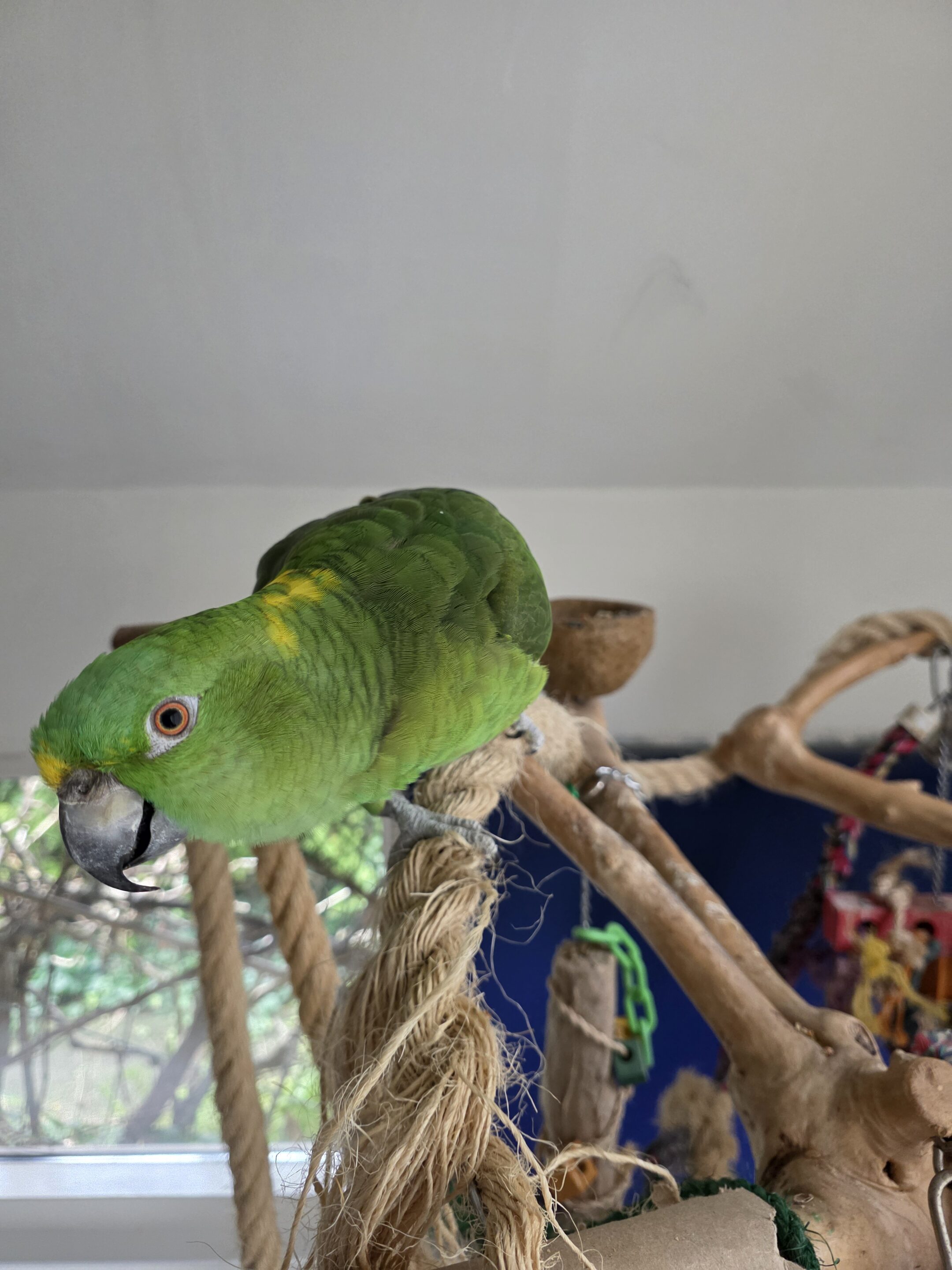- Er is al een andere papegaai aanwezig bij voorkeur een Amazone (met zorgvuldige en rustige introductie).