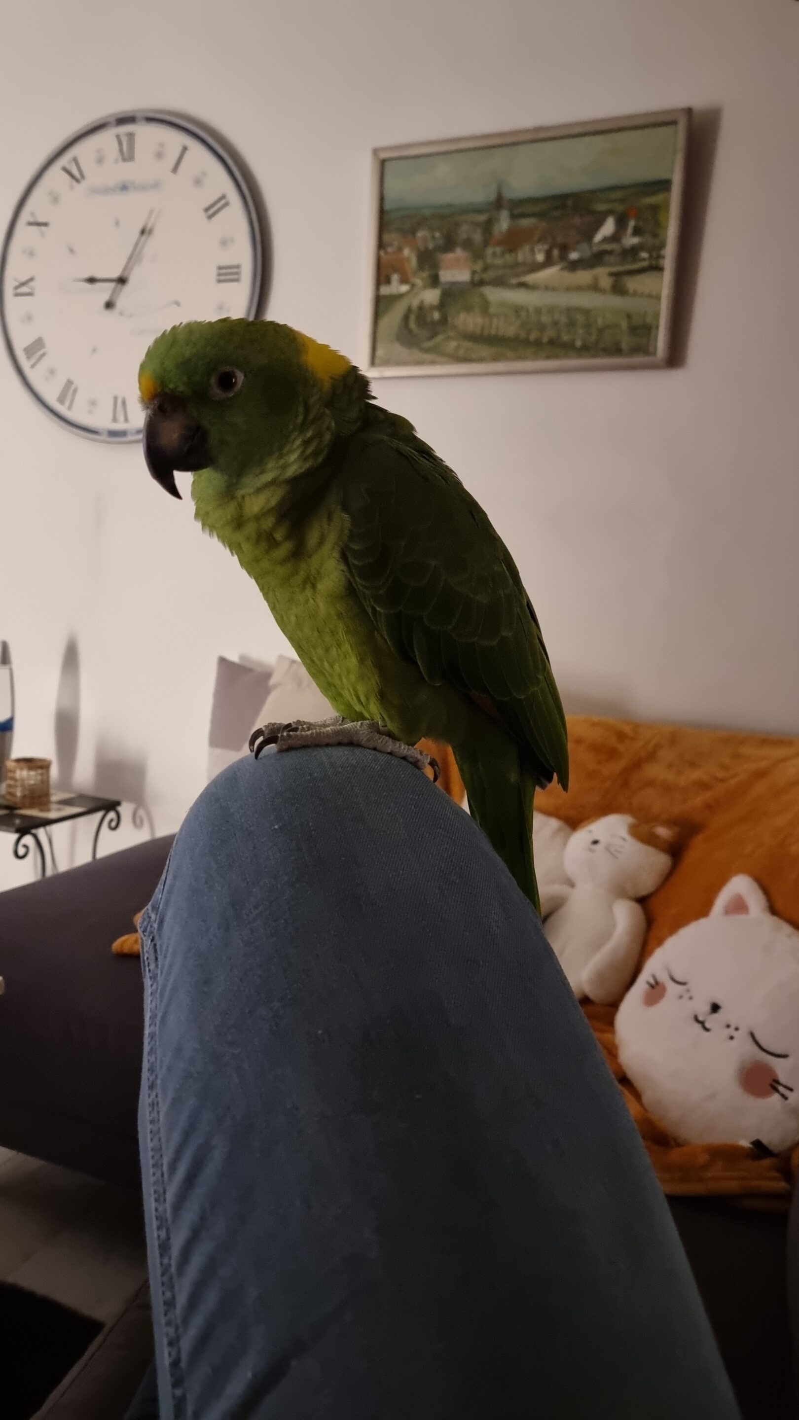 Ik ben Suvi, een prachtige geelnekamazone pop (Amazona auropalliata), geboren in april 2019. Ik woon al mijn hele leven bij mijn eerste eigenaar, maar nu is het tijd om op zoek te gaan naar een plekje waar ik weer alle aandacht kan krijgen die bij mij past.